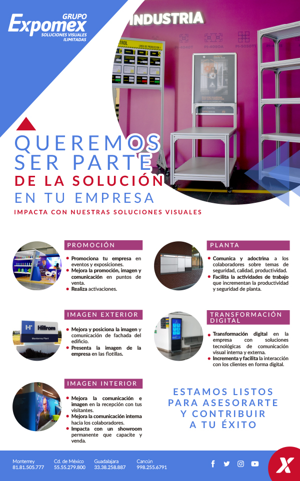 Correo electrónico datos@somosindustria.com. / Teléfonos: (81) 8479 5917 y (81) 8248 0001.