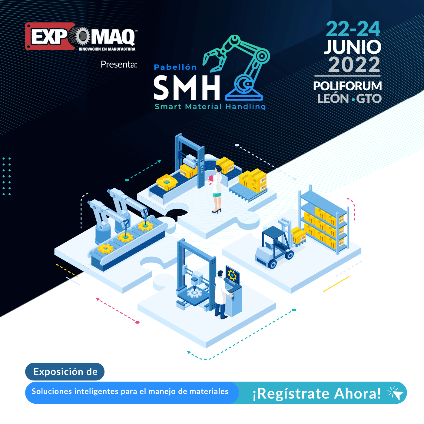 En esta edición de Expomaq, le extendemos una invitación especial al área de almacenaje y logística de tu empresa para conocer las soluciones innovadoras de manejo de carga y almacenaje que el pabellón SMH traerá para ustedes.